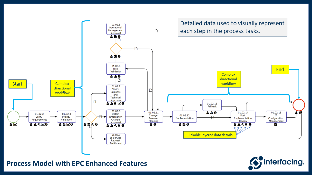 With Interfacing’s Enterprise Process Center, process mapping and process modeling of your workflows with BPMN 2.0 has never been easier! Create your work processes quickly and clearly to improve the agility and transparency of your day-to-day business activities, making every step effortless.